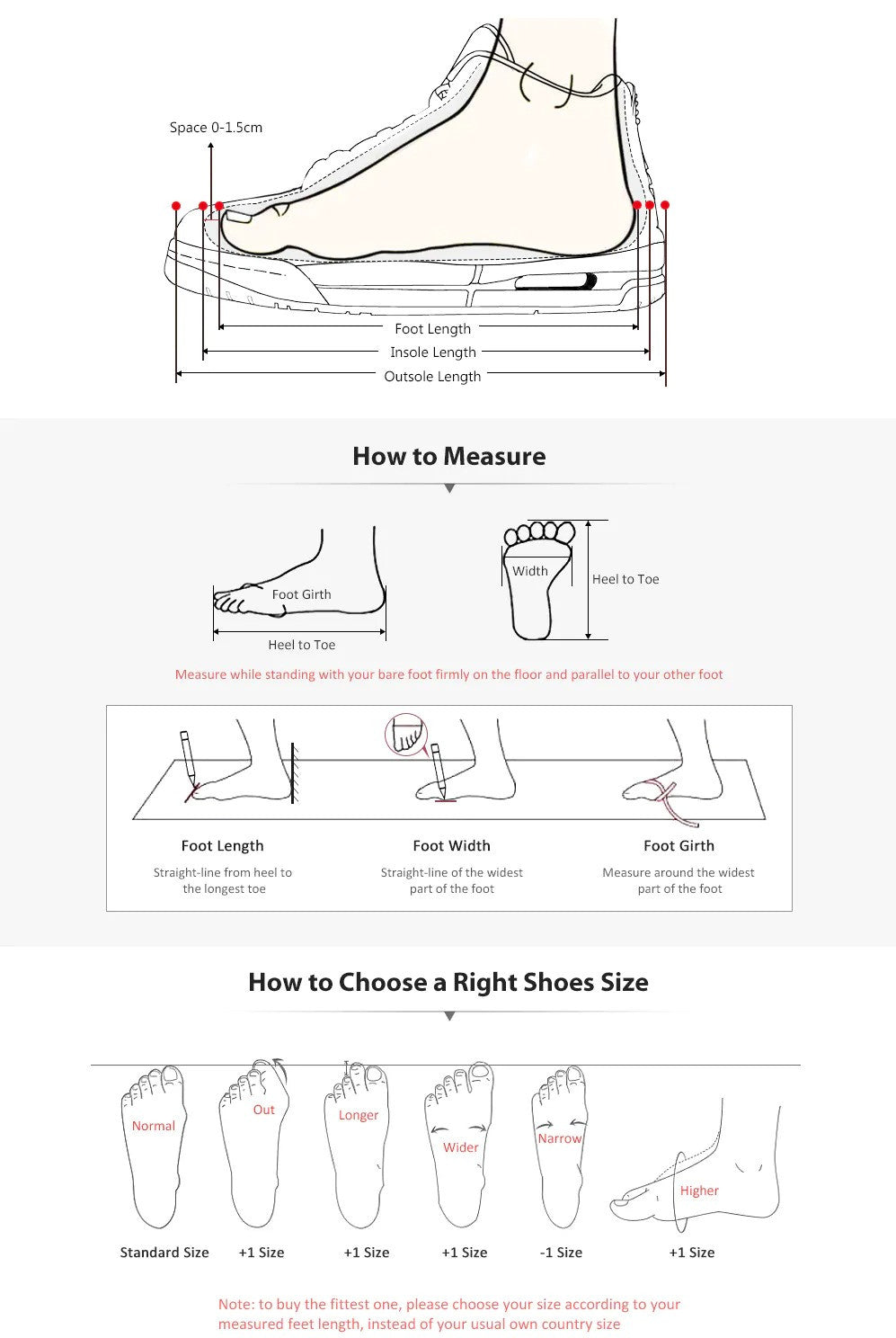 1.Please select a suitable size base on your foot length;